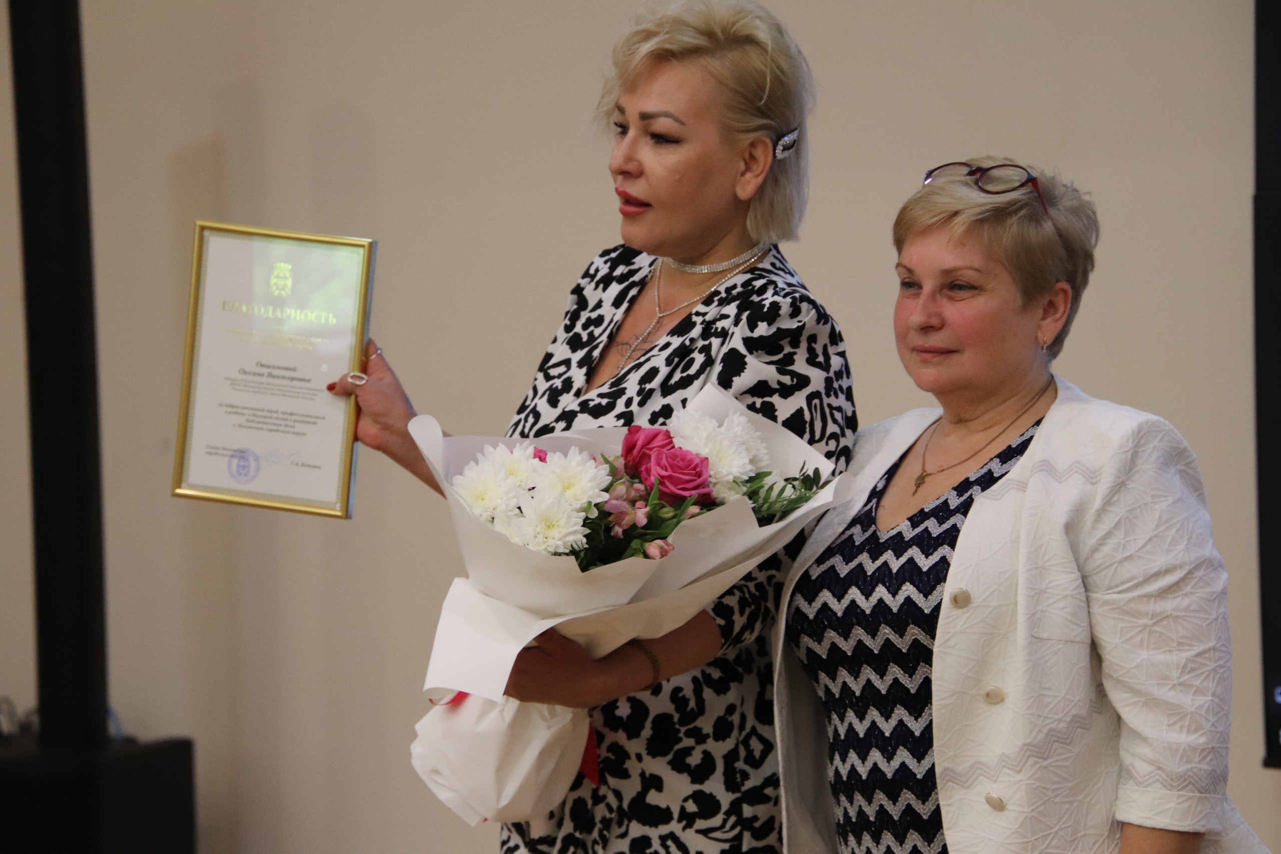 27 мая прошел день библиотек, которые активно участвуют в организации литературной жизни в России. И я с радостью вручаю сегодня заместителю директора МБУК ЦРБС Елене Рогозянской, ведущей сегодняшнюю торжественную церемонию, знак главы Ленинского городского округа «За личный вклад в развитие округа», а также вручаю благодарность главы за развитие библиотечного дела в округе Оксане Овшиновой.